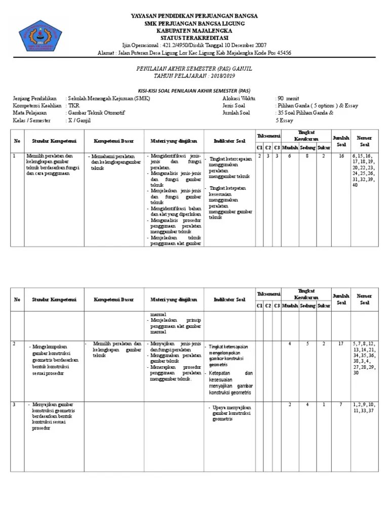 X Tkr Soal Gambar Teknik Penilaian Akhir Semster Smk Nusantara 89 Teknik Kendaraan Ringan Mata Pelajaran Gambar Teknik Kelas X Semester 1 Nama Course Hero from www.coursehero.com Maybe you would like to learn more about one of these? We did not find results for: Soal gto kelas 10 semester 1. Check spelling or type a new query.